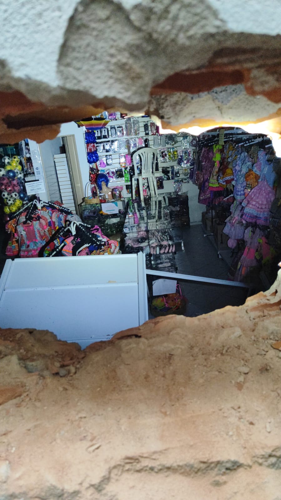 Equipes policiais do 1º BPM foram acionadas após a informação que o alarme de uma joalheira teria disparado, por volta de 02h da manhã, do último domingo, 7. No local, os policiais militares se deparam com um buraco na parede da joalheria e um instrumento, provavelmente utilizado para perfuração na parede.